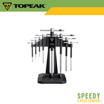 8 Pro quality, hardened steel hex wrenches for better wear resistance and longer tool life. Hex heads on each end of the handle provide additional positions while a speed sleeve adds speed with efficiency and the sliding T-handle imparts additional leverage. Included tool holder perfectly positions each each wrench for easy access and storage.
